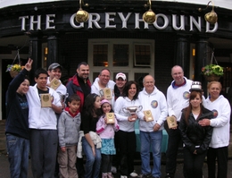 Other interesting things to mention in 2008: The mayor of Crawley unveiled a new plaque to mark the historical significance of the Greyhounds and Tinsley Green for the British & World marbles tournaments. There was also participation of the BBC Sportsround in the first round and they got knocked out by the Australian champions (The Bevers). The weather forecast was not promising at all, but it turned out much better than anticipated. Please click here for more photos on the 2008 tournament. The official report of the 2008 tournament can be found here. | ||