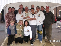 2004 Annual World ChampionshipThe 2004 tournament was our first participation. We lost in the first round against a German team (Saxonia II) but thoroughly enjoyed the day. When we arrived, we were not sure what to expect. Although we read a lot about the tournament, the way the game is played, we had never seen a marble ring before. We were used to the Mediterranean games (single hole). Since understanding the rules a bit better, we built an official ring in our back garden in Yorkshire (Leeds). |